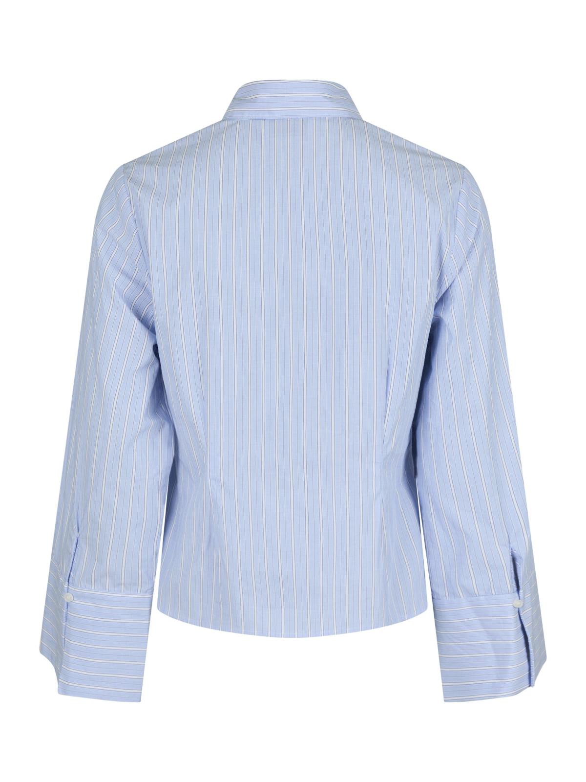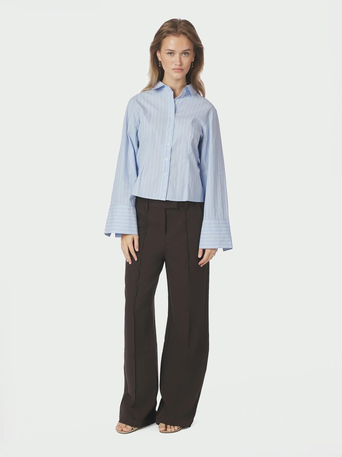Snyggt åtsittande skjorta med vida ärmar och manschetter. Modellen är 176 cm lång och bär storlek 36.